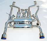 Invidia 07+ Infinity G37 Coupe Gemini Single Layer Titanium Tipped Cat-Back Exhaust SystemThe Gemini muffler inside contains continuous piping design and use of Advantex material that results in an excellent free-flow exhaust with optimized back pressure, giving greater horsepower, torque gains and a rich deep sporty sound. The use of SUS304 polished stainless steel piping, Mandrel bent to shape, state of the art CNC machine made flange, Robot TIG welding and double wall polished stainless steel or Titanium tips, provides outstanding durability and appearance.