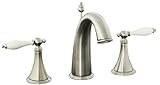 Are you looking for the best review for Kohler Finial Traditional Widespread Lavartory Faucet w/ Biscuit Handles Inserts? Read customer review, features, specifications, description, check prices update and more satisfying for Kohler Finial Traditional Widespread Lavartory Faucet w/ Biscuit Handles Inserts product reviews! Kohler K-310-4F NOTE: This item does not ship to California or Vermont The Finial traditional widespread bathroom faucet brings illustrious artistic splendor into your space with its sleek and modern design. This piece is as durable as it is attractive with washerless ceramic valving and solid brass construction. The unit includes a high-arch spout, lever handles, a pop-up drain with a 1-1/4" tailpiece, flexible stainless steel supplies and an aerator. Stylish biscuit handle inserts complete the look. Features: -Two-handle widespread bathroom faucet for 8" - 16" centers -Solid brass construction for durability and reliability -Handles pre-assembled on valves to simplify installation -Overall dimensions: 3.5" H x 9" W x 14" D Finial Traditional Specification Sheet & Measurements Installation Instructions Homeowner's Guide and Service Parts Finish: Vibrant Brushed Nickel