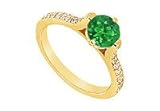 Emerald and Diamond Engagement Ring : 14K Yellow Gold - 0.75 CT TGW Size 6.5