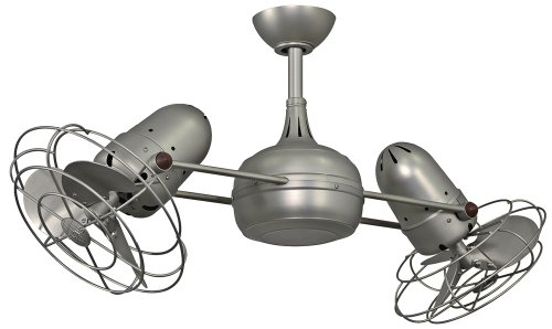 40" Matthews Dagny Nickel Double-Headed Ceiling Fan?This brushed nickel finish dual head ceiling fan makes a smart and stylish addition to your home. Featuring metal blades, a cylindrical central housing and straight, parallel arms with fan heads that can be positioned in 180 degree arcs for optimum air movement. This damp-rated ceiling fan is ideal for bathrooms and other locations with high humidity. Includes 3-speed hand-held remote control. From Matthews Fan Company.